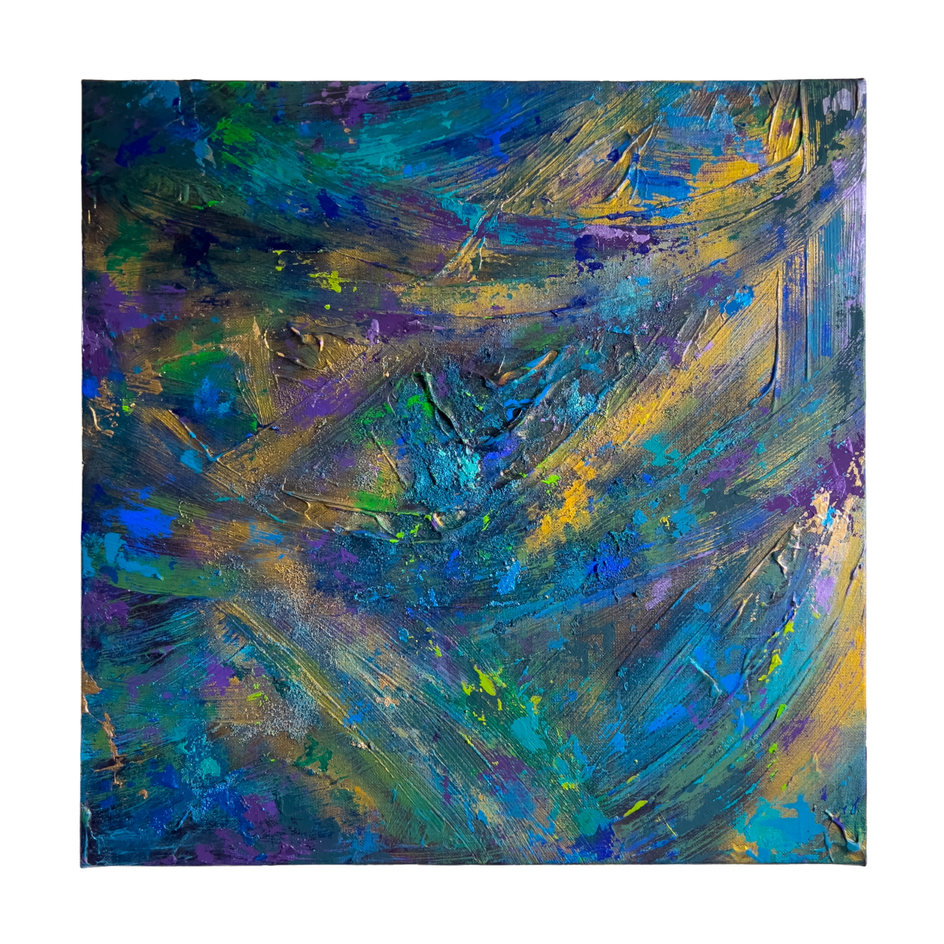 this painting combines ultra matte strokes with sweeps of iridescence featuring acrylic resin with chromashine® technology.