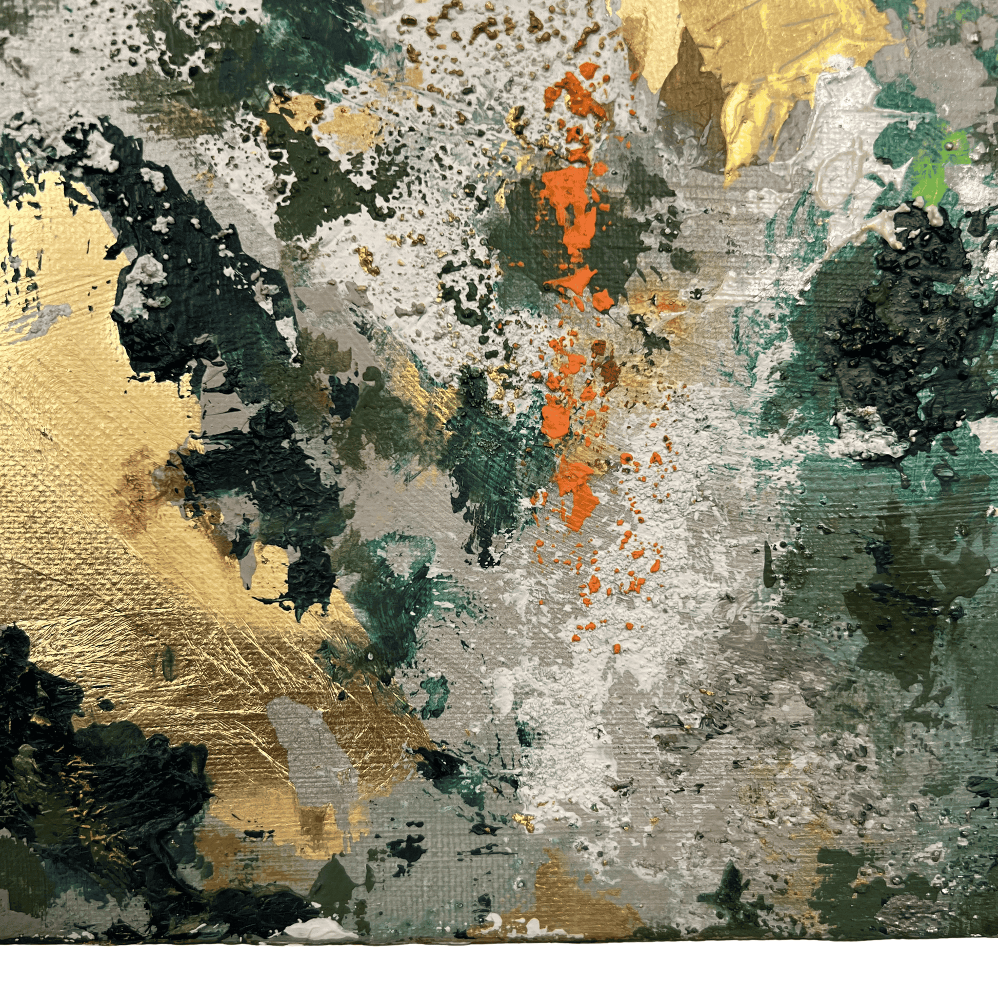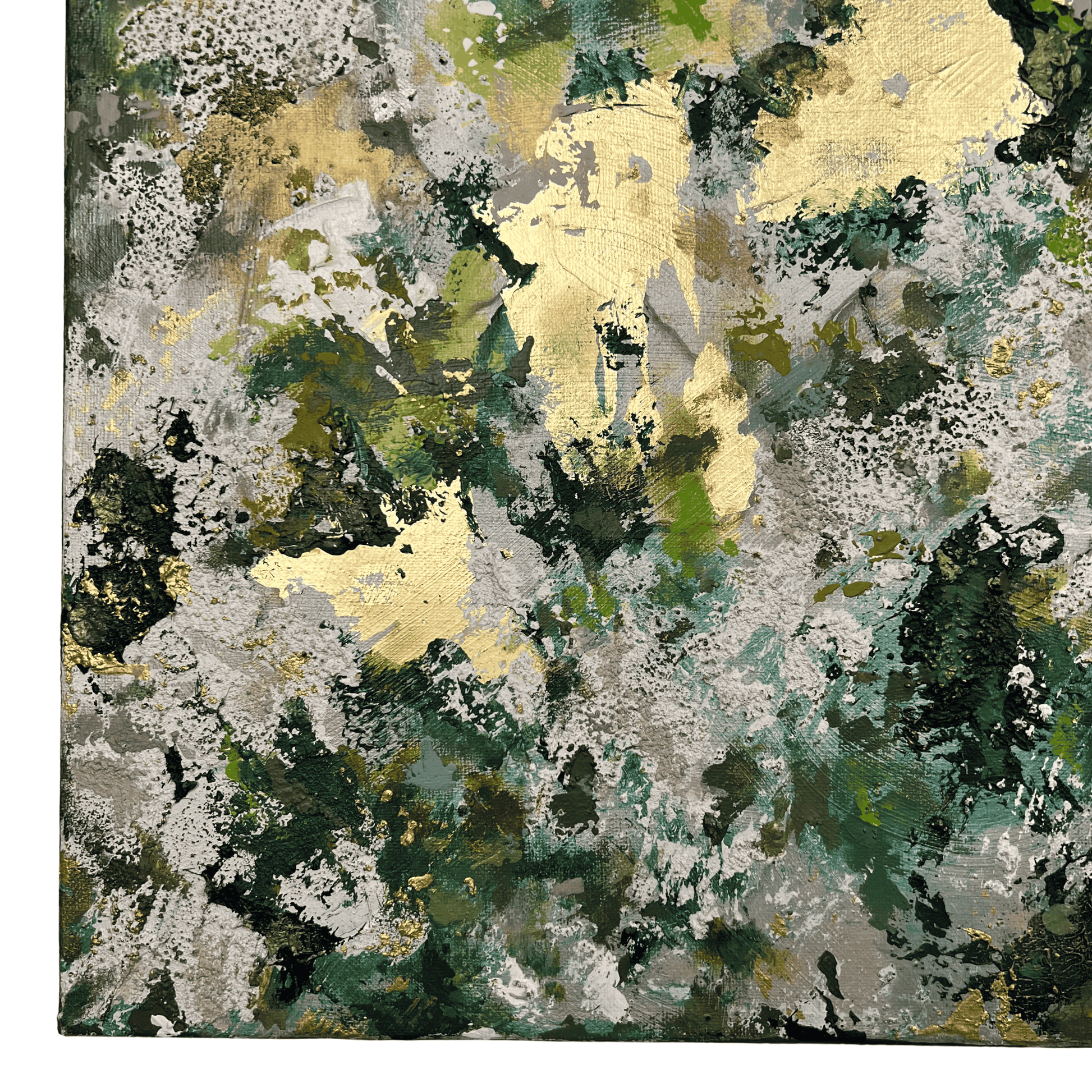 lush woodland tones and gold leaf evoke a sense of quiet vitality and grounded movement. named after the Hawaiian word nahele—which refers to a deep grove or expanse of trees—the piece channels a living canopy through layered textures and an organic palette. the name was chosen for its earthy lyricism and its resonance with the work’s connection to nature’s rhythm.